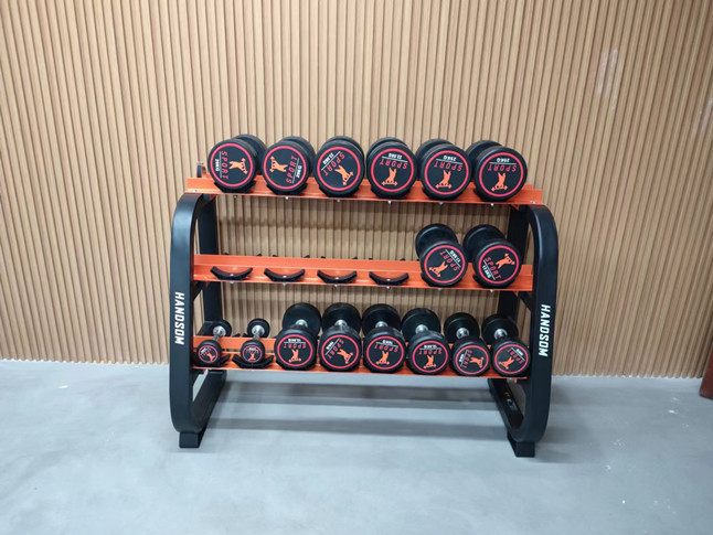 根據(jù)鍛煉者不同的需求配不同重量的啞鈴(自配),可放置5對啞鈴;機器主要采用100*50扁圓管和50*50角鐵;表面采用靜電熱固化粉末涂層,具有卓越的耐用性,前處理采用不銹鋼砂拋丸,能有效除銹,除油,除應(yīng)力。使表面烤漆附著力更高,更耐用;橡膠腳墊,具有減震功能,能更好的保護地面。